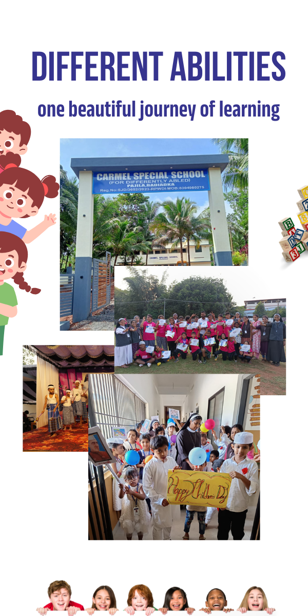 Carmel Special School is a dedicated institution providing specialized education, therapy, and compassionate care to empower differently abled children to learn, grow, and live with confidence, independence, and dignity in an inclusive and supportive environment.